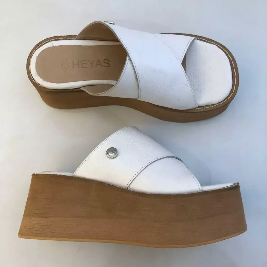 Zueco destalonado de cuero con tiras anchas cruzadas, super comodo. Linea Heyas
